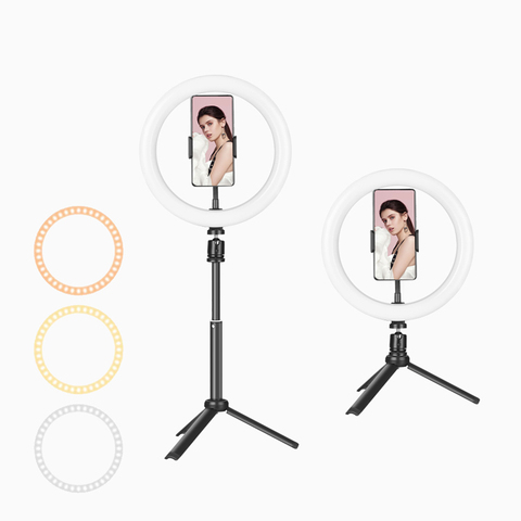 ไฟวงแหวน LED 10นิ้วแหวนปรับสีได้สำหรับถ่ายวิดีโอเมคอัพพร้อมขาตั้งกล้องแบบยืดหดได้